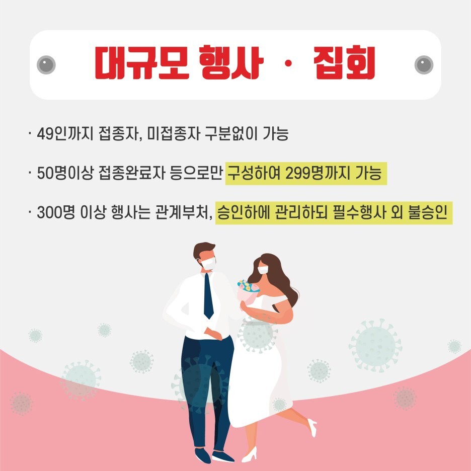 이번 거리두기는 백신 접종자와 미접종자 사이를 두고 거리두기 개편이 강화되었다고 합니다.